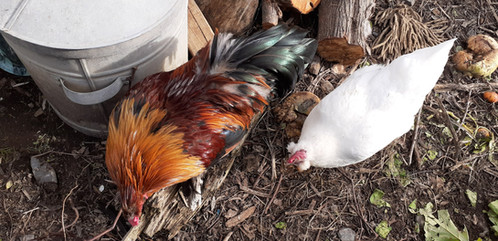 I fixed two new roosts, one a long tool handle, the other a tree branch. I filed down any sharp knots on the branch so it’s comfy for their feet. I brought in the nest boxes and set them up.